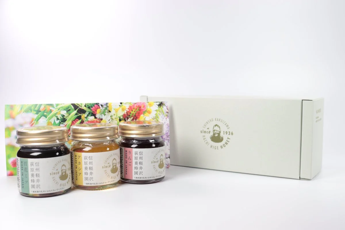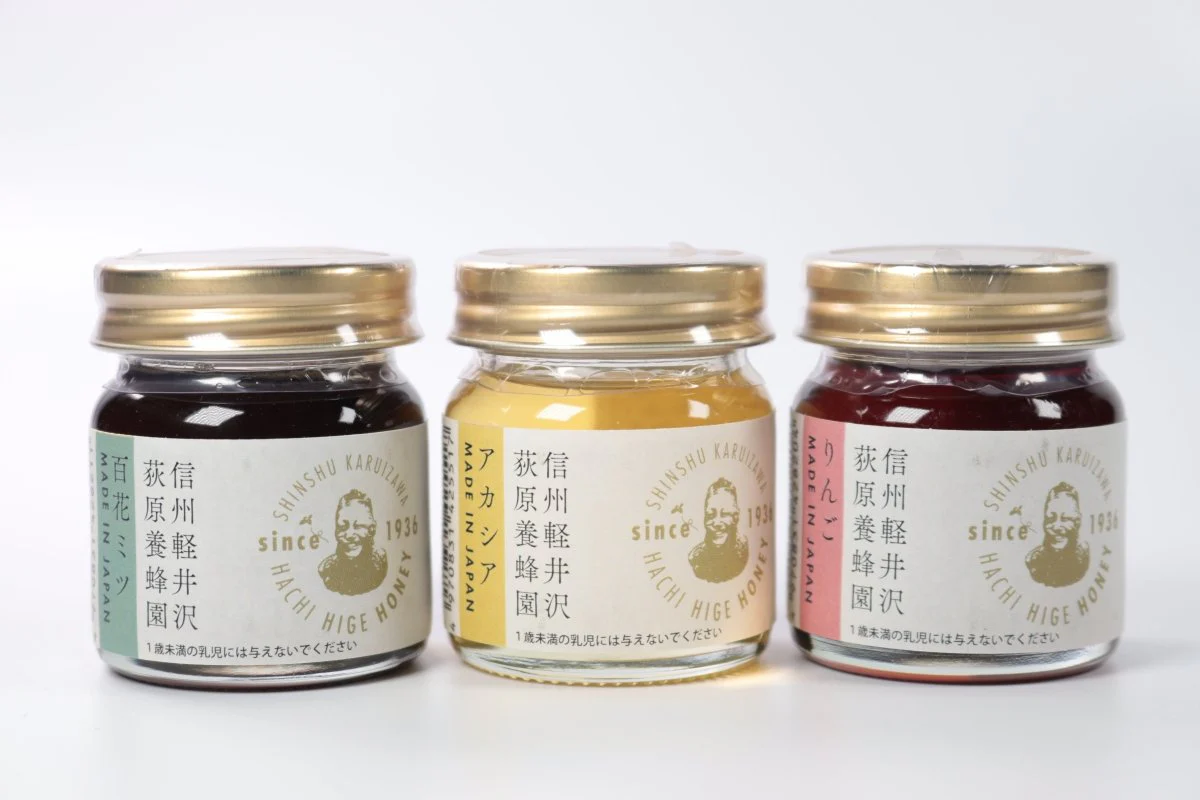 信州で採れた蜂蜜で人気のある3品。色や香り、甘みに特色があります。