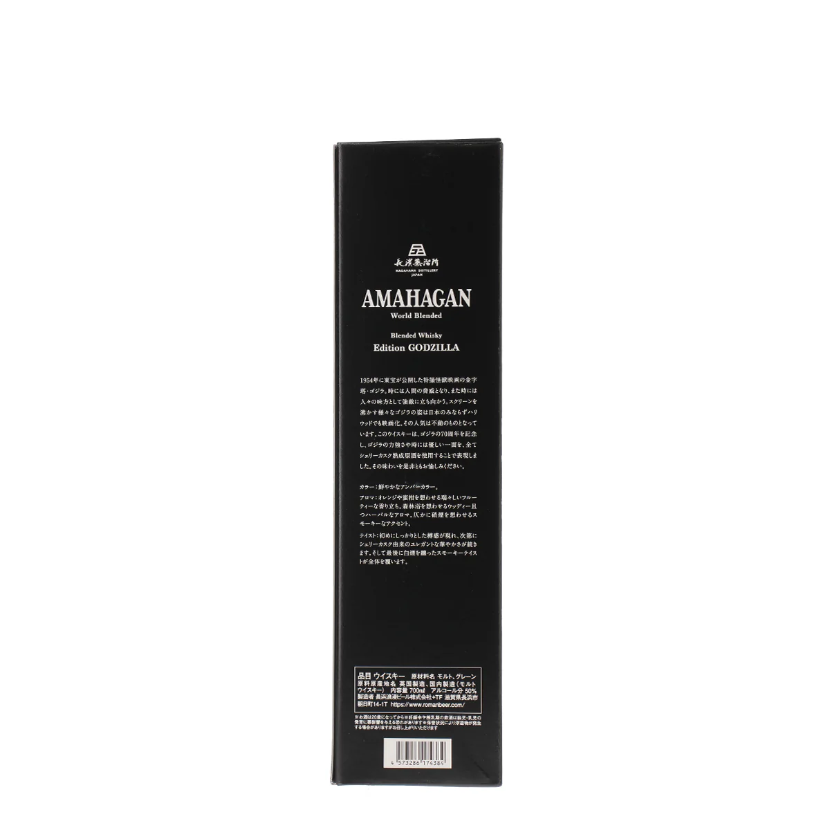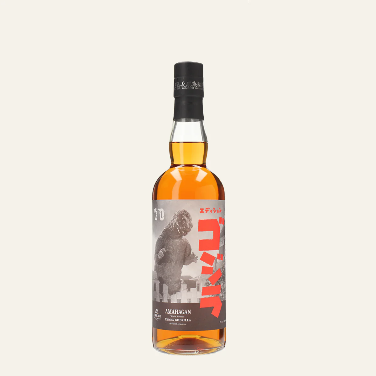 1954年に東宝が公開した特撮怪獣映画の金字塔・ゴジラ。時には人間の脅威となり、また時には人々の味方として強敵に立ち向かう。スクリーンを沸かす様々なゴジラの姿は日本のみならずハリウッドでも映画化。その人気は不動のものとなっています。このウイスキーは、ゴジラの70周年を記念し、ゴジラの力強さや時には優しい一面を、全てシェリーカスク熟成原酒を使用することで表現しました。