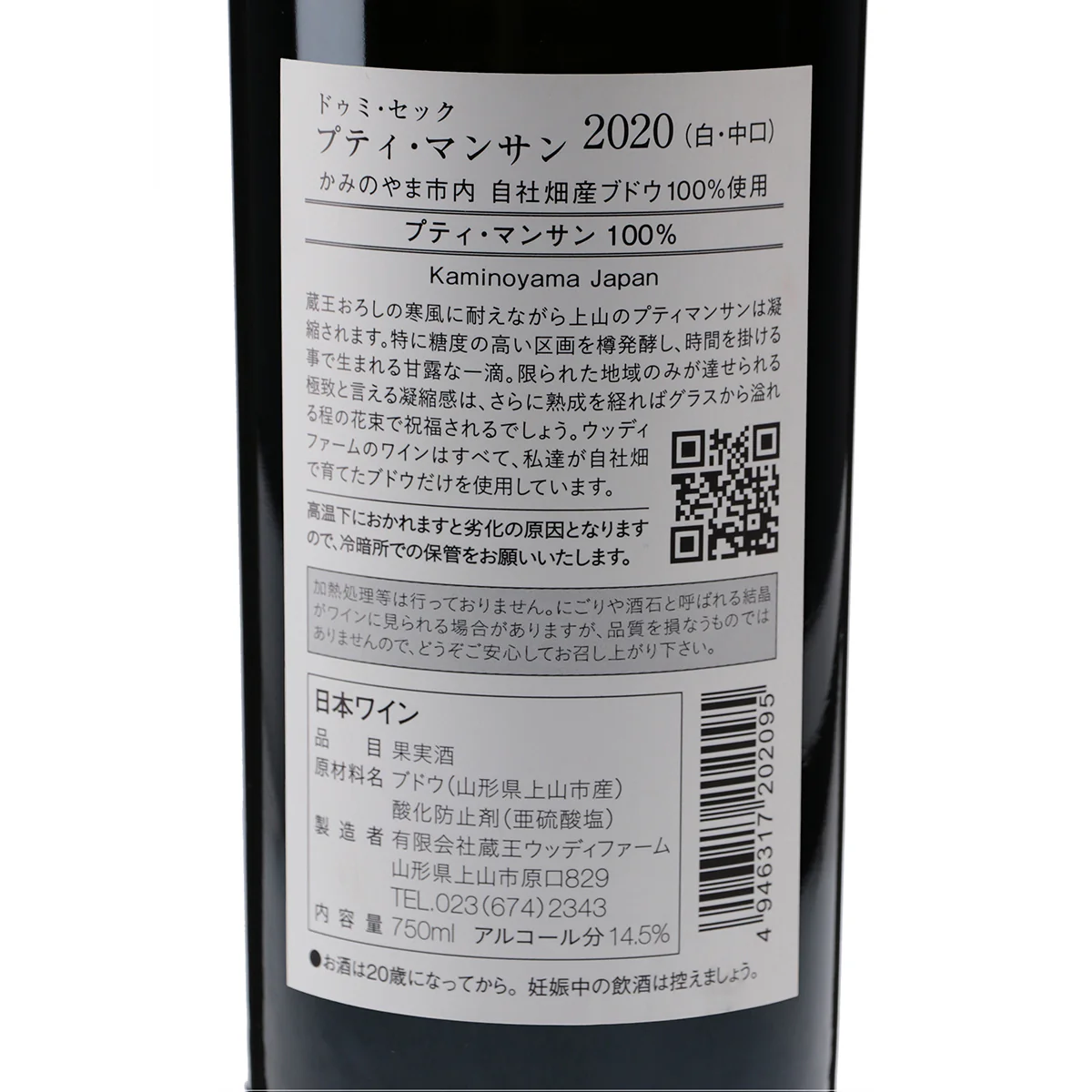 【醸造家・金原勇人氏のコメント】特に糖度の高い区画を樽発酵し、時間を掛ける事で生まれる甘露な一滴。限られた地域のみが達せられる極致私達の管理する畑で、最も早く萌芽し、最も遅く収穫される品種が最晩熟品種プティマンサンです。小ぶりの房にバラバラと小さい粒が実り、皮が厚いために果汁の取得率は恐ろしく低い栽培家泣かせでありながら、笑ってしまうほど糖度と酸度が高いのが特徴です。