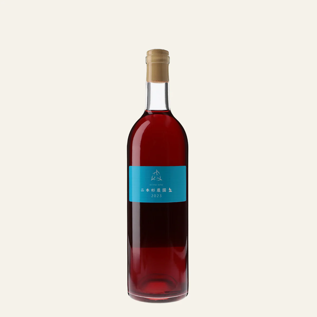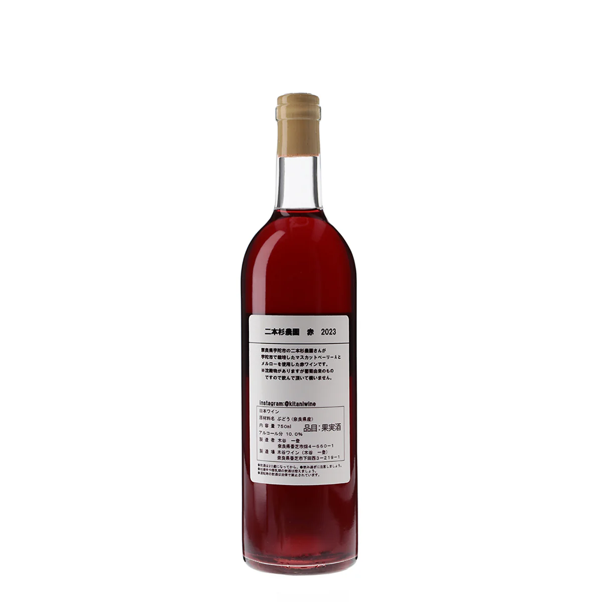 70歳から、ワインを作る!とブドウ栽培を始めたという二本杉農園の竹内氏が奈良県宇陀市の畑で育てたメルローとマスカット・ベーリーAを、木谷氏が何も加えずに仕込んだ赤ワイン