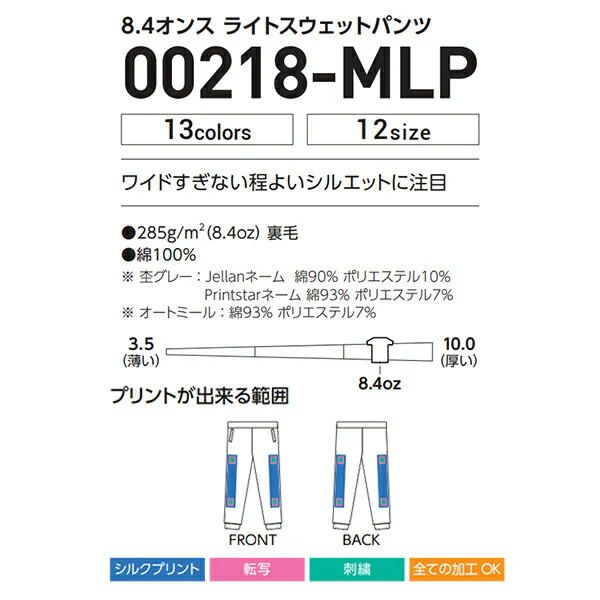 PrintStar 00218-MLP 8.4オンス ライトスウェットパンツについて