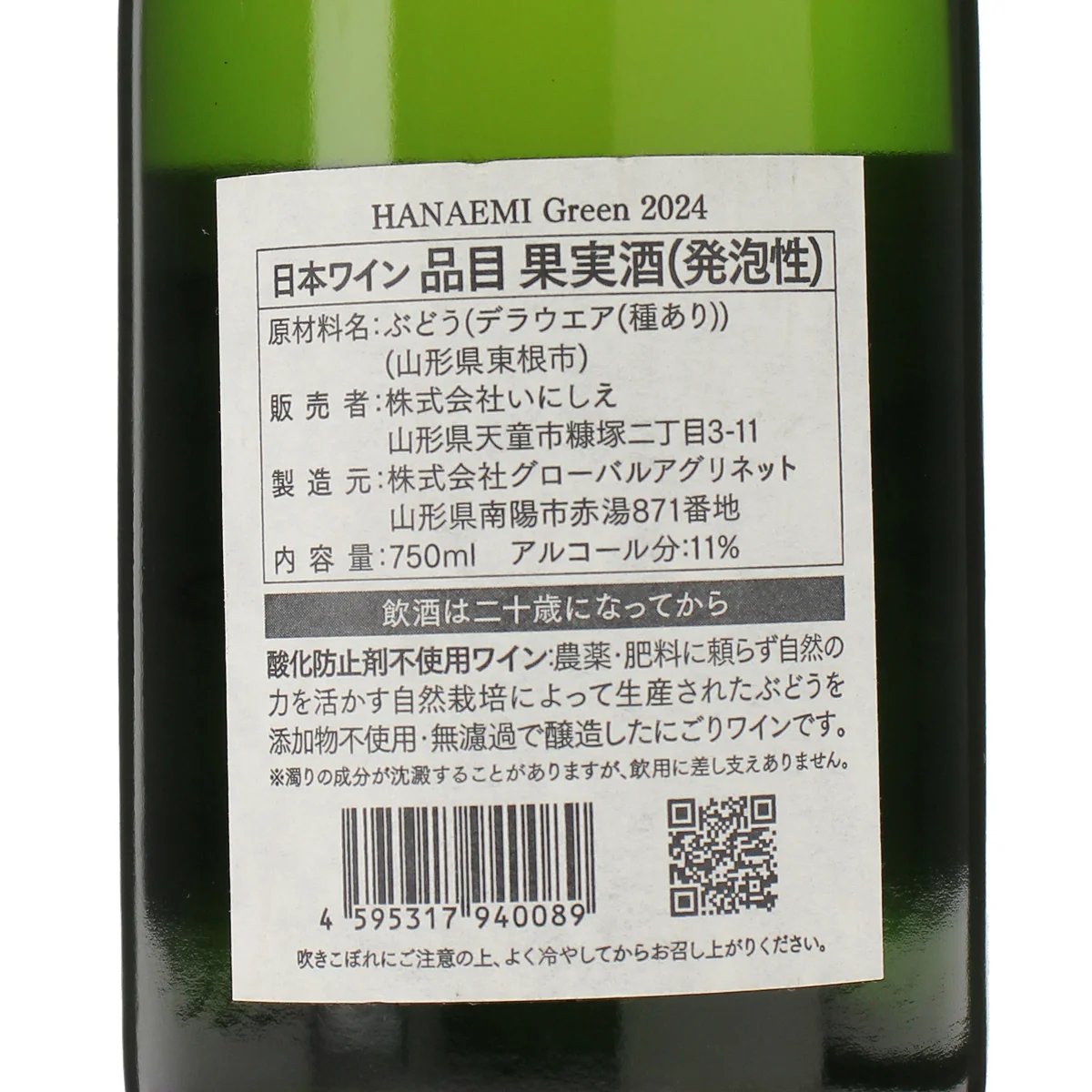 「HANAEMI green(花笑みグリーン)」の名前は、大和言葉から引用したもので、笑顔溢れるなか、心知れた友人たちと楽しく飲んでもらうことをイメージしたものです。ラベルは、畑のある山形県東根市の最低・最高気温を表現しています。